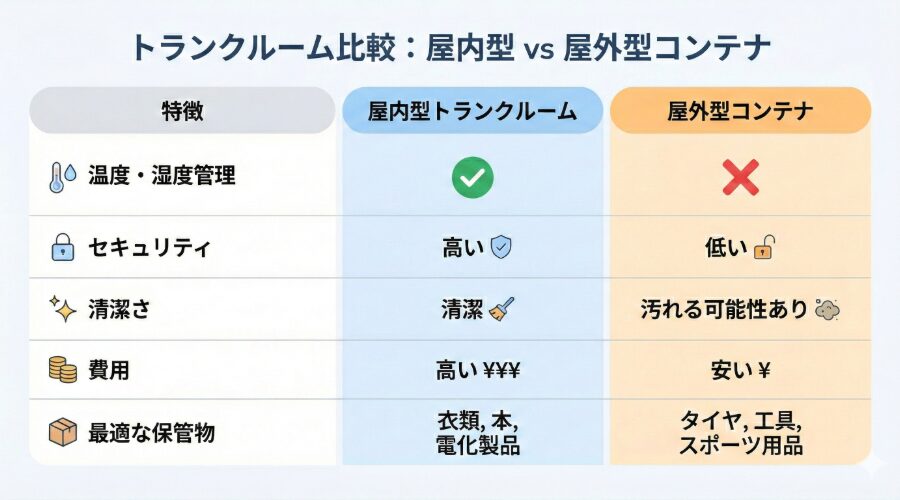 トランクルームには大きく分けて「屋内型」と「屋外型(コンテナ)」の2種類があります。